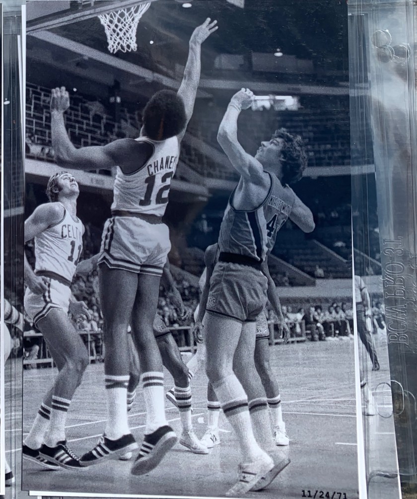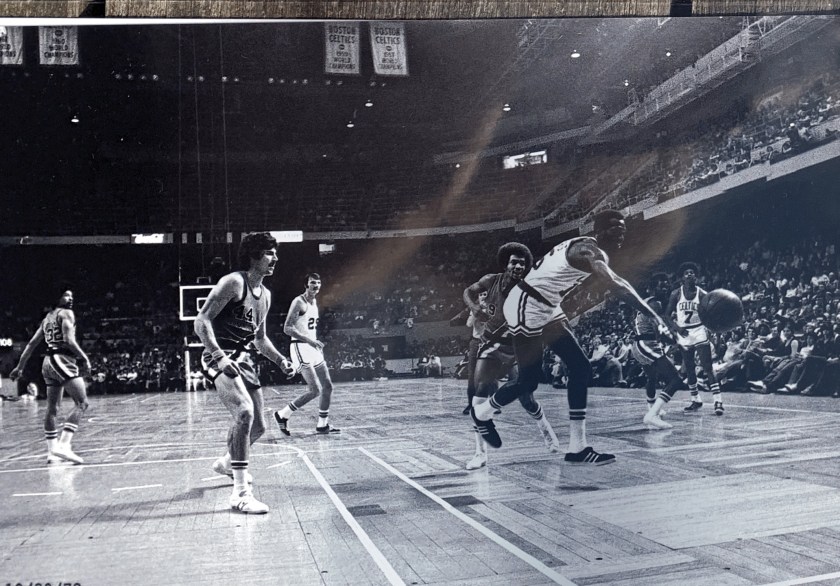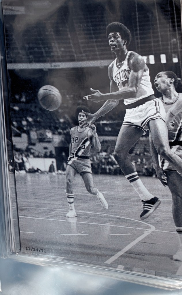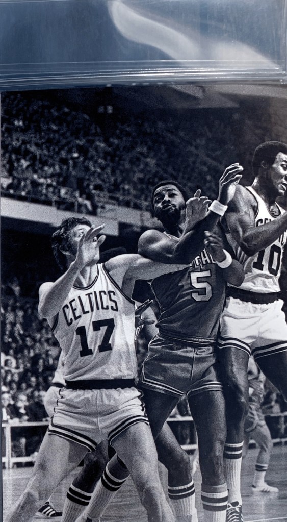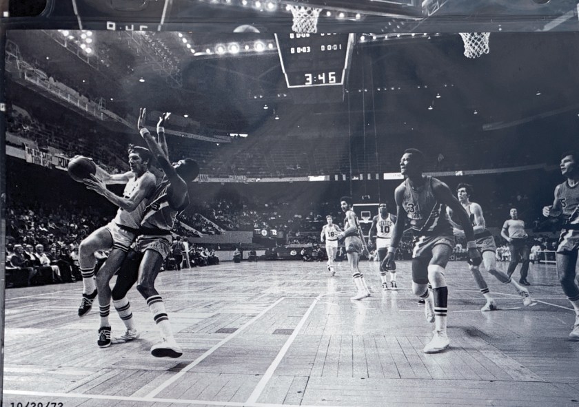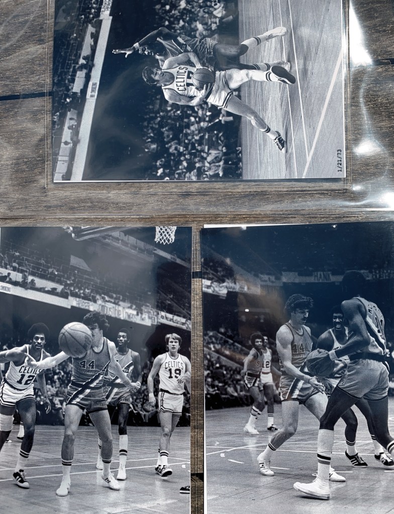 A series of exquisite black and white photographs taken by a courtside reporter feature the intense, legendary rivalry with the Boston Celtics from 1970 – 1975. A collection of these rarely seen, artistically-shot photos were selected to be printed and framed.