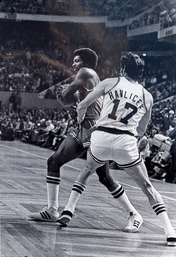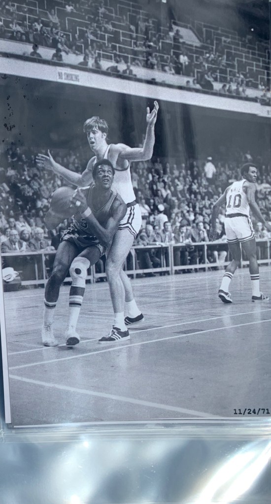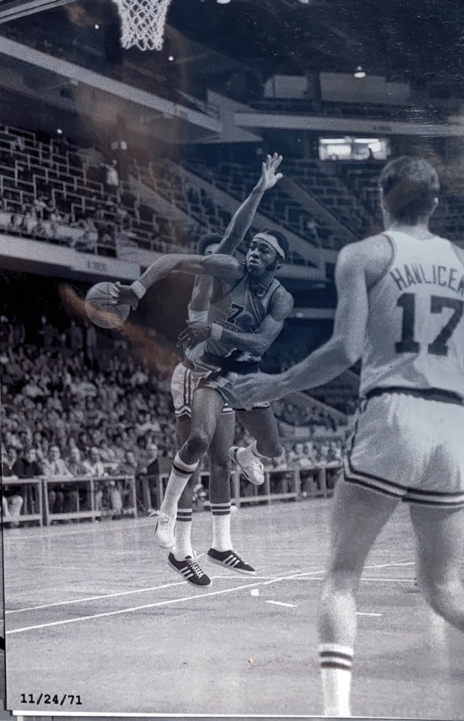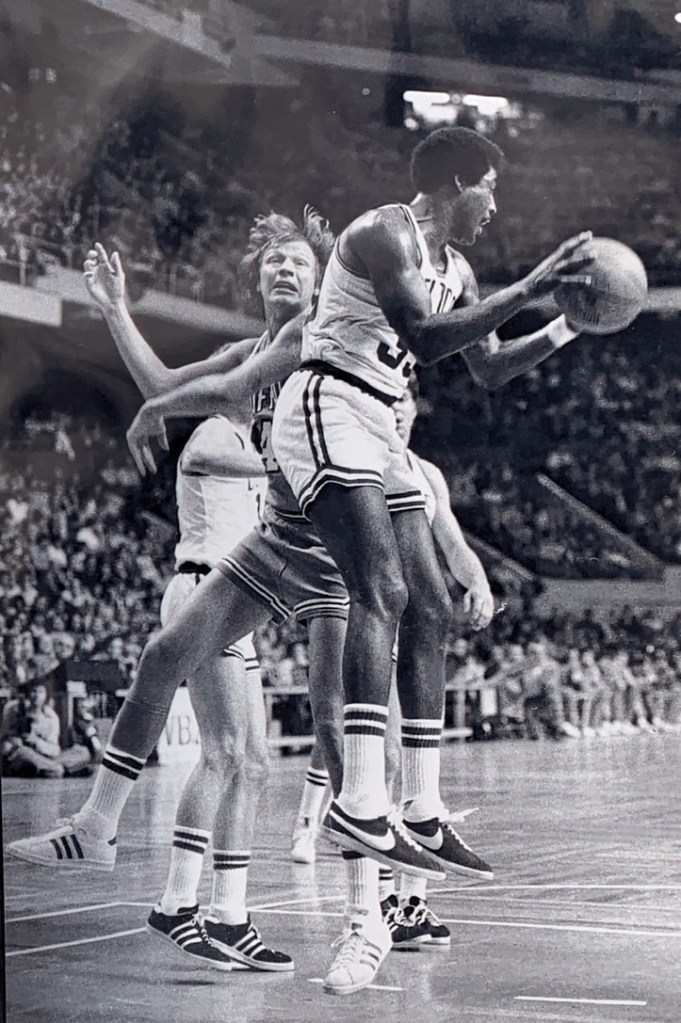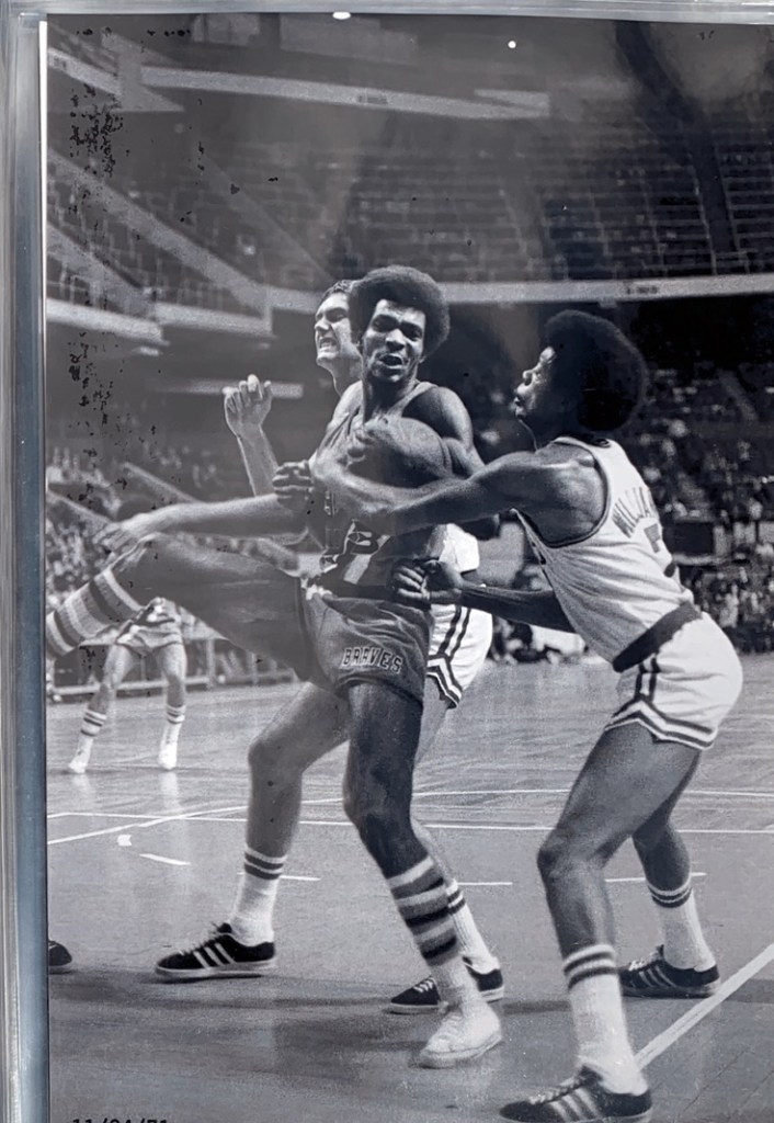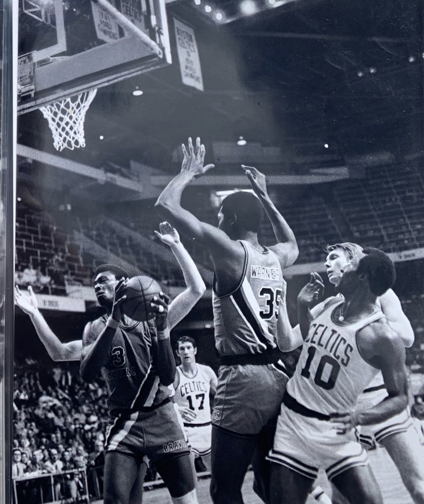 A series of exquisite black and white photographs taken by a courtside reporter feature the intense, legendary rivalry with the Boston Celtics from 1970 – 1975. A collection of these rarely seen, artistically-shot photos were selected to be printed and framed.